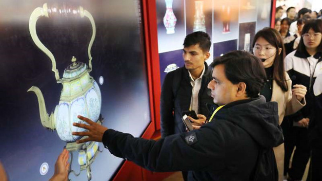 外交部組織外國記者參觀“砥礪奮進的五年”大型成就展