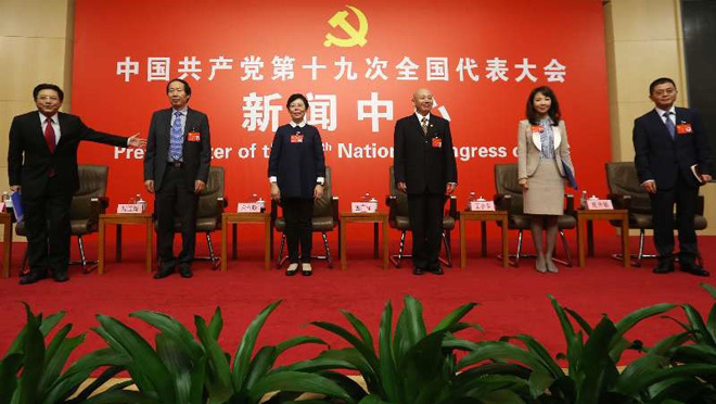 10月22日,中國共產黨第十九次全國代表大會新聞中心舉行記者招待會,請教育部黨組書記、部長陳寶生,民政部黨組書記、部長黃樹賢,人力資源社會保障部黨組書記、部長尹蔚民,住房城鄉建設部黨組書記、部長王蒙徽,國家衛生計生委黨組書記、主任李斌介紹滿足人民新期待,保障改善民生有關情況,并回答記者提問。