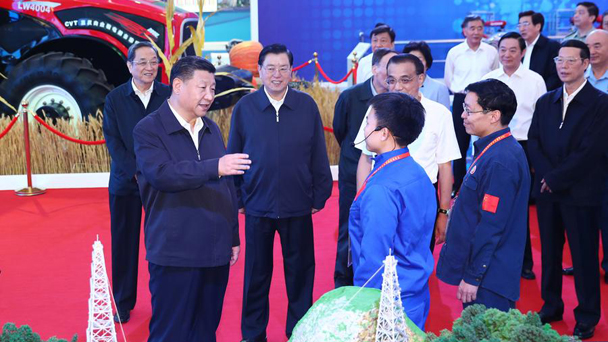 9月25日,黨和國家領導人習近平、李克強、張德江、俞正聲、劉云山、王岐山、張高麗等在北京展覽館參觀“砥礪奮進的五年”大型成就展。