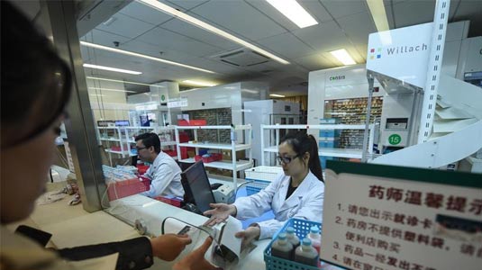 上海黃浦區瑞金二路街道社區衛生服務中心的家庭醫生魏魏在社區居民李阿婆的家中查看她腳部浮腫的情況(2月10日攝)。全民醫保制度基本建立、公立醫院綜合改革持續深化、基層醫療衛生服務體系不斷健全……我國自2009年啟動的新一輪醫改已取得重大進展和明顯成效。