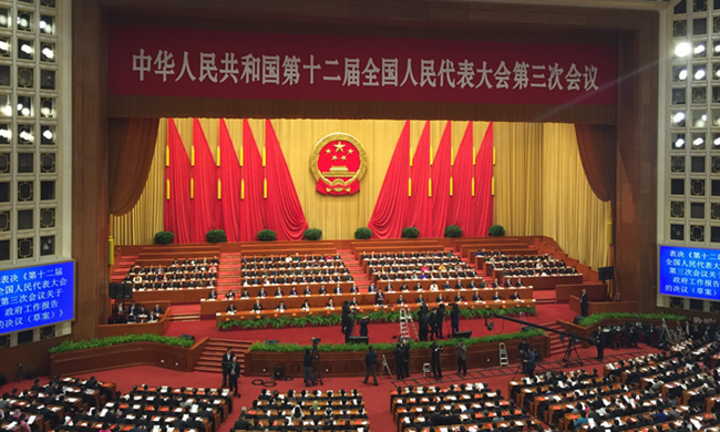 十二屆全國人大三次會議3月15日上午在人民大會堂舉行第四次全體會議,這是本次大會的最后一次會議,習近平出席會議。【全文】