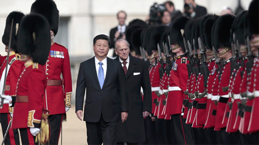 10月20日,對(duì)英國進(jìn)行國事訪問的國家主席習(xí)近平出席了英國女王伊麗莎白二世在倫敦騎兵檢閱場舉行的隆重歡迎儀式。