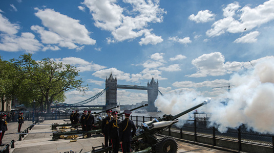 倫敦塔橋、格林公園分別鳴放62響和41響禮炮,向來訪的中國貴賓致敬。記者從英國王室官網(wǎng)了解到,英國皇家炮兵隊(duì)會(huì)在特殊場合,如國事訪問、議會(huì)開幕和王室成員的生日等鳴放禮炮致敬。