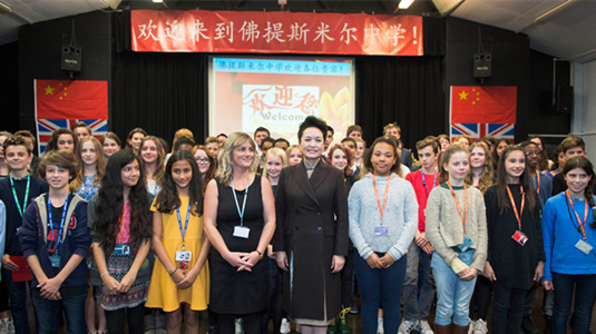 10月21日,國家主席習(xí)近平夫人彭麗媛在倫敦參觀福提斯米爾中學(xué)。 10月21日,國家主席習(xí)近平夫人彭麗媛在倫敦參觀福提斯米爾中學(xué)。 10月21日,國家主席習(xí)近平夫人彭麗媛在倫敦參觀福提斯米爾中學(xué)。