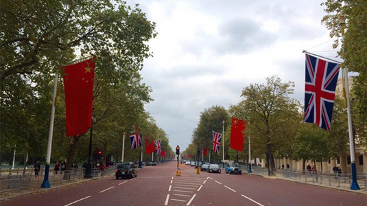 10月19日至23日,習近平將對英國進行國事訪問,這是10年來中國國家主席首次對英國進行國事訪問。習近平訪英前夕,倫敦街頭掛滿了中國國旗。檢閱皇家騎兵衛隊之后,習近平將和女王共乘這輛馬車到達白金漢宮。
