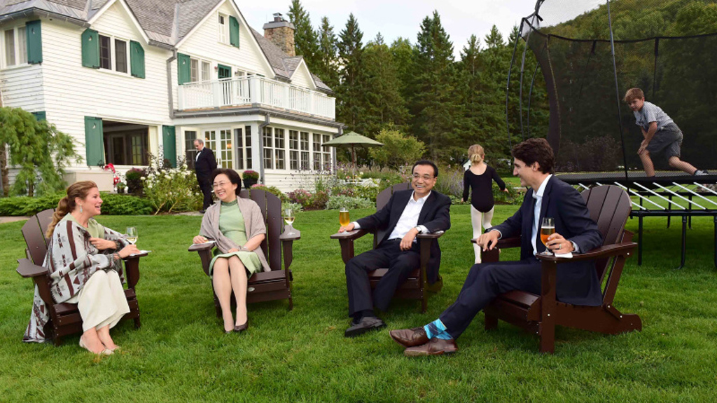 8歲的小小特魯多顯然毫不怯場。他主動提出,要給家中這位尊貴的客人——中國總理李克強先生,表演后空翻。這大概是他在草坪上常玩的項目。
