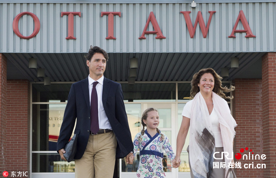 當地時間2016年8月29日,加拿大渥太華,加拿大總理特魯多攜妻子和女兒乘飛機前往中國訪問和將出席G20峰會。圖片來源:東方IC 當地時間2016年8月29日,加拿大渥太華,加拿大總理特魯多攜妻子和女兒乘飛機前往中國訪問和將出席G20峰會。