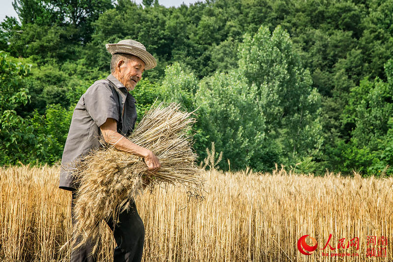 人民網(wǎng)鄭州6月5日電(宋芳鑫)俗話說(shuō):蠶老一時(shí),麥?zhǔn)煲簧巍{準(zhǔn)找欢ㄒ獡寱r(shí)機(jī),一旦誤了時(shí)機(jī),收成就會(huì)大打折扣。6月1日,在河南省平頂山魯山縣葉坪村,92歲的高大爺正忙著收割小麥。雖然已經(jīng)92歲高齡,但高大爺精神矍鑠,身板骨硬朗。割麥、碾場(chǎng)等農(nóng)活樣樣精通,是村里農(nóng)活上的“老把式”。