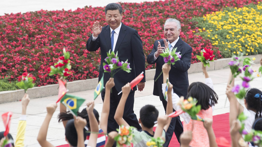 9月1日,國家主席習近平在北京人民大會堂同來華進行國事訪問并出席金磚國家領導人廈門會晤和新興市場國家與發展中國家對話會的巴西總統特梅爾舉行會談。新華社記者王曄攝 9月1日,國家主席習近平在北京人民大會堂同來華進行國事訪問并出席金磚國家領導人廈門會晤和新興市場國家與發展中國家對話會的巴西總統特梅爾舉行會談。