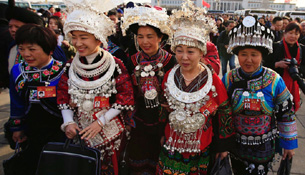 2017年3月5日,第十二屆全國人民代表大會第五次會議在北京人民大會堂開幕。少數(shù)民族代表身著盛裝,成為一道亮麗的風(fēng)景線。