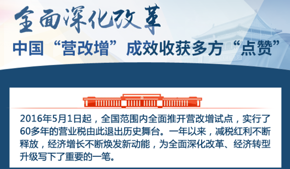 2016年5月1日起,全國范圍內全面推開營改增試點,實行了60多年的營業稅由此退出歷史舞臺。一年以來,減稅紅利不斷釋放,經濟增長不斷煥發新動能,為全面深化改革、經濟轉型升級寫下了重要的一筆。