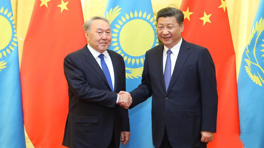 6月8日,國家主席習近平在阿斯塔納同哈薩克斯坦總統納扎爾巴耶夫舉行會談。會談前,習近平出席納扎爾巴耶夫在總統府舉行的隆重歡迎儀式。