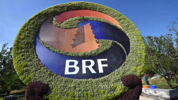 5月5日,在雁棲湖國際會(huì)議中心,工作人員在布置“一帶一路”國際合作高峰論壇的標(biāo)志花壇。”——北京市人民政府新聞發(fā)言人王文杰就“一帶一路”國際合作高峰論壇籌備情況答新華社記者問