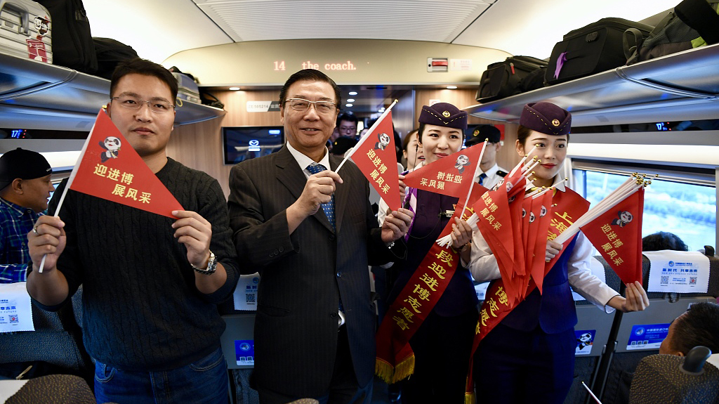 “鋪天蓋地”營造進博會濃厚氛圍 復興號“進口博覽會主題宣傳列車”首發