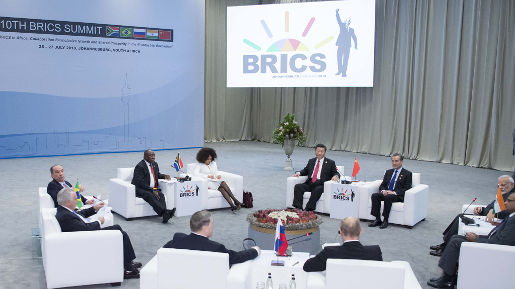 當地時間2018年7月27日,紀念金磚國家領導人會晤10周年非正式會議在南非約翰內斯堡舉行。中國國家主席習近平、南非總統拉馬福薩、巴西總統特梅爾、俄羅斯總統普京、印度總理莫迪出席。