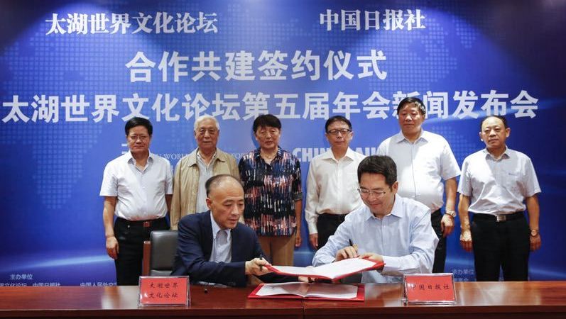 2018年8月28日,太湖世界文化論壇與中國日報社合作共建簽約儀式暨第五屆年會新聞發布會在北京舉行。