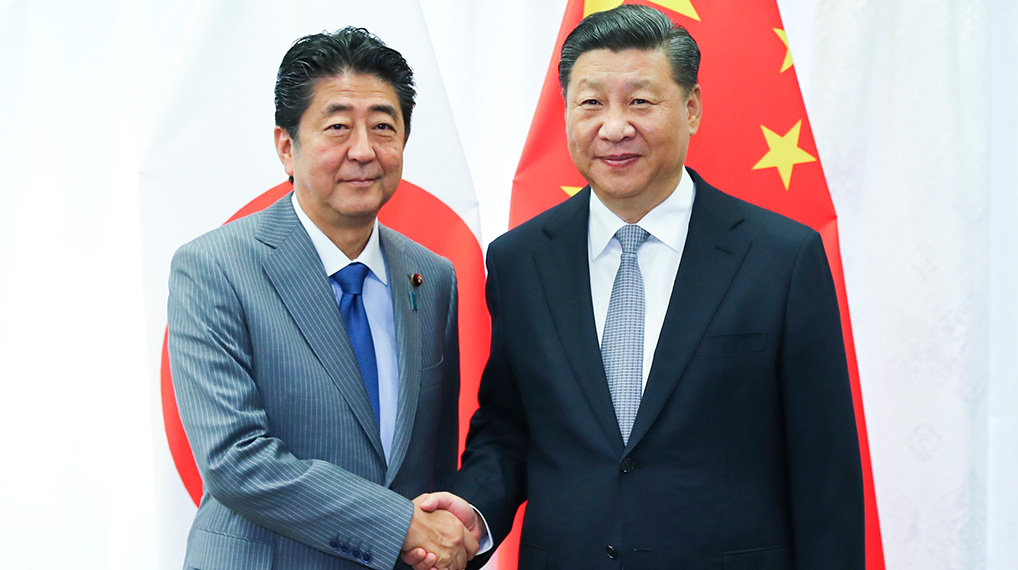 國家主席習近平12日在符拉迪沃斯托克會見日本首相安倍晉三。習近平首先對不久前日本關西地區和北海道分別遭受臺風、地震災害,造成重大人員傷亡和財產損失表示慰問。