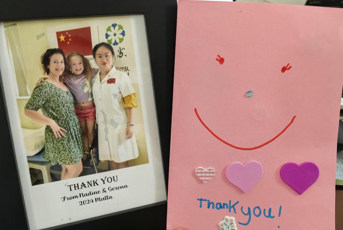當被問及長大后想做什么職業,她斬釘截鐵地回答:“想向高醫生學習針灸,做針灸醫生!”得知高友玲即將結束援外工作,瑟琳娜提前給高友玲制作了本文開頭的那張卡片,還附了一包禮物,有裝裱好的母女倆和高友玲第一次見面的合影、馬耳他當地產的蜂蜜和特色點心。高友玲也回贈了國內帶來的中藥驅蚊止癢酊,鼓勵她長大以后去中國學習中醫。納丁也表示,只要瑟琳娜愿意,她會全力支持孩子學習中醫。最后高友玲還饒有興致地給瑟琳娜展示了耳朵模型和王不留行籽,并演示了敷貼耳穴埋籽的操作方法。“耳朵也能治病,還是第一次聽說!”母女兩人嘖嘖稱奇。
