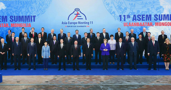 7月15日上午,第十一屆亞歐首腦會議在烏蘭巴托開幕。