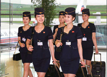 封面人物是朝鮮唯一一家國際航空公司——高麗航空的5名空姐。這些空姐身著2013年更換的新制服,胸前帶有朝鮮前領導人金日成和金正日徽章。