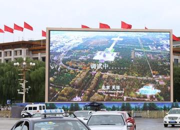 9月1日,位于北京天安門廣場上的兩塊LED大屏幕正式亮屏調試。