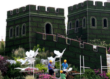 北京天安門廣場現“長城”主題山水花壇