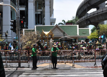 當地時間8月18日中午12時40分,曼谷爆炸案發生地點四面佛附近已經恢復交通秩序。