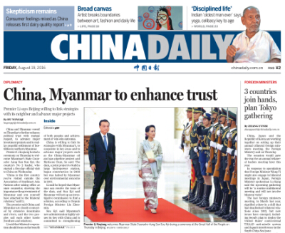 8月19日中國日報推薦:李克強(qiáng)會見昂山素季:增強(qiáng)政治互信