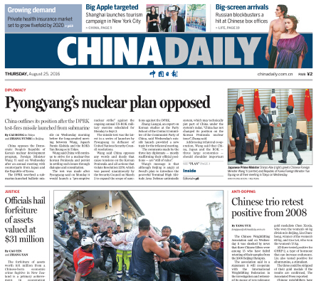 8月24日中國日報推薦:中日韓外長會任重道遠(yuǎn)