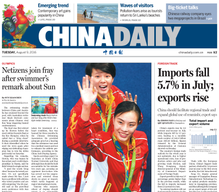 8月9日中國日報推薦:網民力挺孫楊 不滿霍頓繆談
