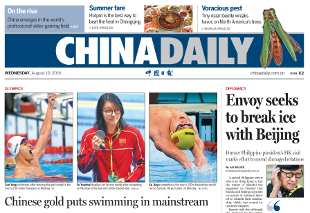 8月10日中國日報推薦:中國游泳隊爆發“洪荒之力” 游泳成為中國優勢項目