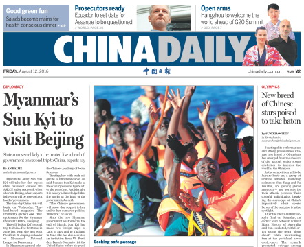 8月12日中國日報推薦:昂山素季將訪問中國