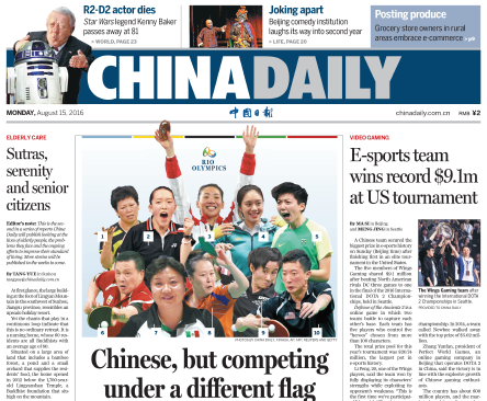 8月15日中國日報推薦:代表外國出戰的中國運動員
