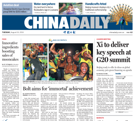 8月16日中國日報推薦:習近平將在G20峰會上發表重要講話