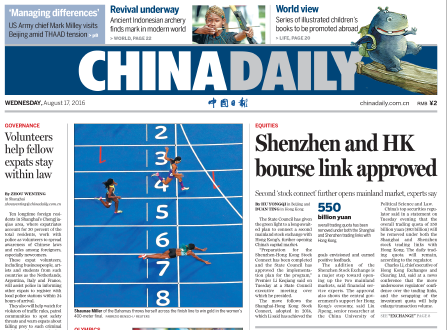 8月17日中國日報推薦:深港通正式獲批
