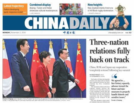 11月2日中國日?qǐng)?bào)推薦:中日韓三國關(guān)系回到正確軌道