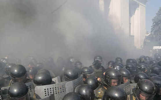 烏克蘭國會初步同意修訂憲法,依據(jù)西方要求授予親俄羅斯武裝控制的東部地區(qū)更大自治權,抗議群眾在國會外與警方?jīng)_突。