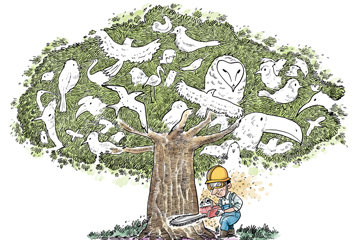過度破壞森林將導致鳥巢數量劇減,鳥類繁衍愈發困難,從而使鳥類瀕臨滅絕。