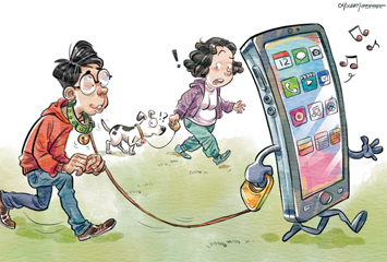 隨著手機(jī)的普及,有些人變得像寵物依賴主人一樣依賴手機(jī)。