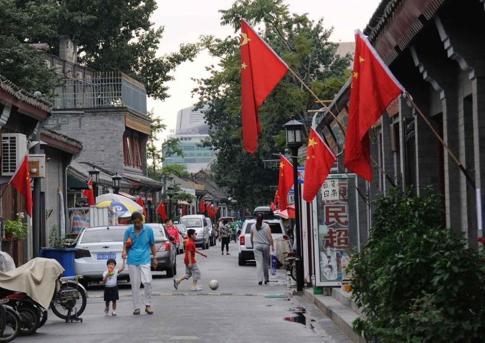 9月1日,北京,大街小巷掛上了國(guó)旗,據(jù)悉,從當(dāng)日起至9月5日,北京天安門廣場(chǎng)周邊高大建筑物將全部插掛彩旗,全市各街道、社區(qū)、單位等將懸掛國(guó)旗,以此慶祝中國(guó)人民抗日戰(zhàn)爭(zhēng)暨世界反法西斯戰(zhàn)爭(zhēng)勝利70周年。