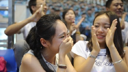 西北工業(yè)大學(xué)2010級(jí)電子信息學(xué)院探測(cè)制導(dǎo)畢業(yè)生蘇敬參加了閱兵方隊(duì),蘇敬的女友觀看閱兵式流下激動(dòng)的淚水。其女友稱,他們已半年沒見面,蘇敬更是一年未回家,但一切都值得。女生流淚。5000余師生觀看閱兵式。