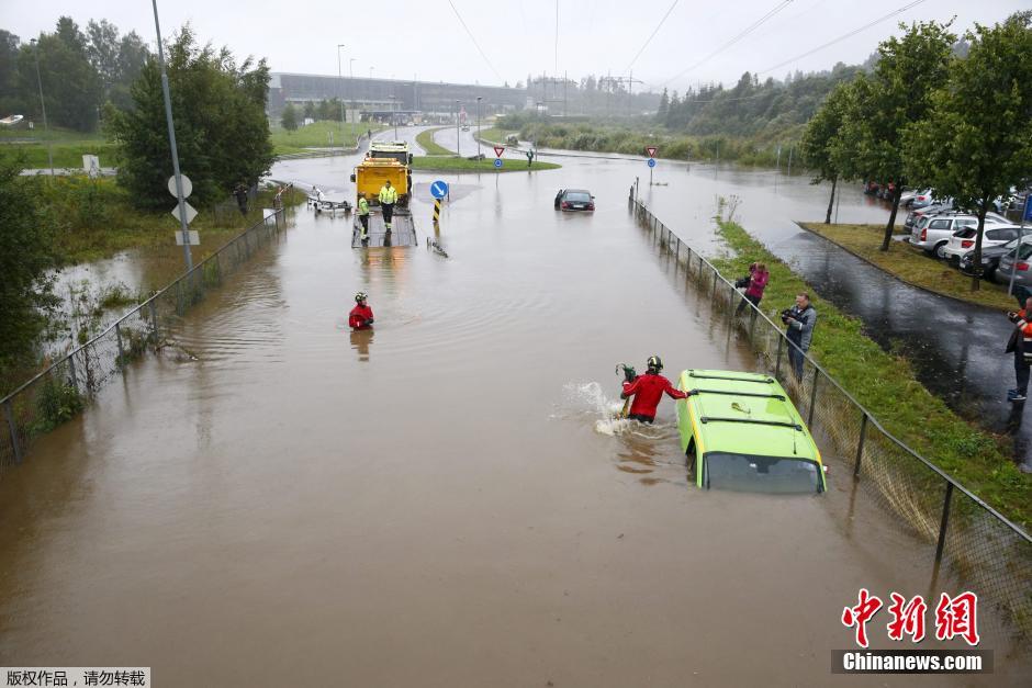挪威強降雨引發洪澇 汽車險遭“滅頂之災”