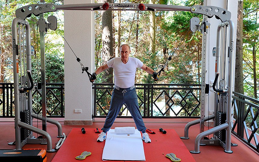 在黑海克里米亞港口重鎮塞瓦斯托波爾乘坐深海潛艇參加實驗。2012年,俄羅斯鐵路研究中心的展覽上,普京現場試用AK-47半自動步槍復制品。普京總統鏡頭感極強,在西伯利亞度假騎馬也不忘展示他姣好的身材。