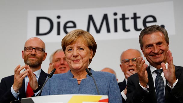 根據德國電視一臺當晚21時50分公布的最新出口民調顯示,默克爾領導的聯盟黨獲得32.5%的選票,領先其他政黨,獲得連任。