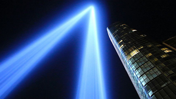美國紐約點亮光柱紀念“9·11”恐襲16周年