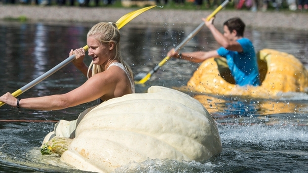 德國南瓜賽舟會 坐在南瓜里競速歡樂無窮
