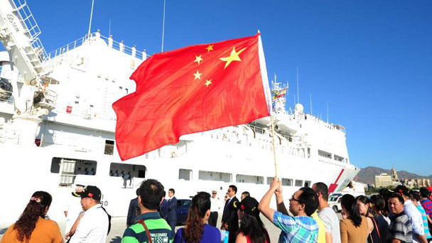西海軍駐馬拉加指揮官哈維爾,中國駐西班牙大使呂凡、國防武官金鷗,西海軍官兵、中國駐西班牙使領館工作人員和中資機構、留學生、華人華僑代表等在碼頭歡送。