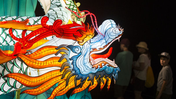 8月18日,在加拿大多倫多,觀眾在展覽會上參觀燈展。本屆展覽會推出以“絲綢之路”為主題的中國燈展,通過17組由中國四川自貢90位匠人制作的大型彩燈,向人們介紹古代“絲綢之路”的神話傳說和文化風(fēng)情。