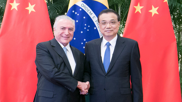 9月1日,國務院總理李克強在北京人民大會堂會見來華進行國事訪問并出席金磚國家領導人廈門會晤和新興市場國家與發展中國家對話會的巴西總統特梅爾。新華社記者王曄攝