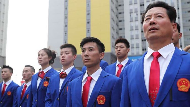 中國體育代表團在雅加達亞運村舉行升旗儀式